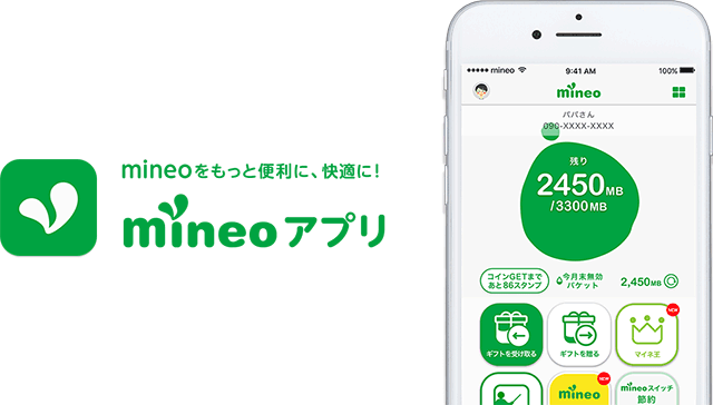 ご来店時、mineoアプリログイン後のホーム画面をご提示ください。