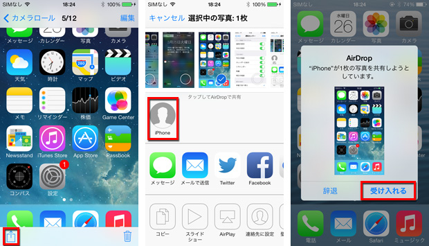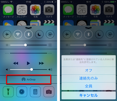 iOSデバイス同士でWi-Fi・Bluetoothを経由し、メールやメッセージを使用することなく、手軽に連絡先を交換できたり、写真やメモ等のファイルを直接送信することができる便利な機能です。