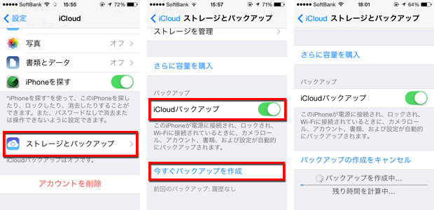 ◇ iCloudを使ってバックアップをとる / バックアップしたデータを復元する