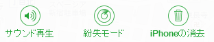 右のinfoアイコンをクリックすると、[サウンド再生] [紛失モード] [iPhoneの消去]が表示されます。