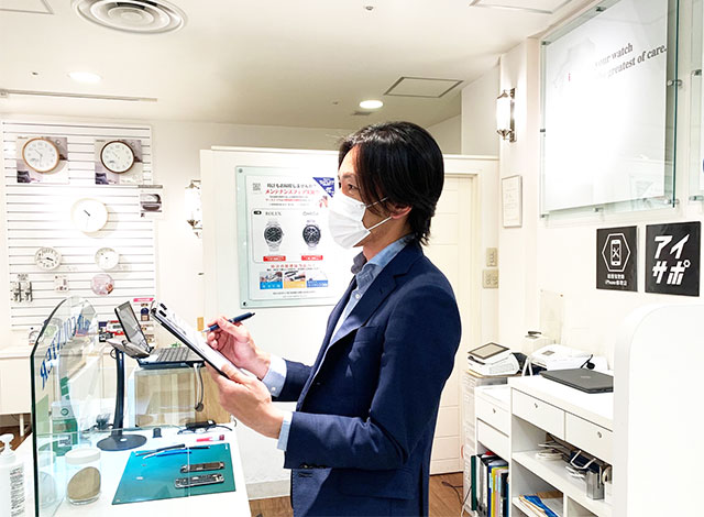 当店は時計専門チェーン店「ザ・クロックハウス」として、毎日、時計修理や電池交換などのお客様が多くご来店頂いております。