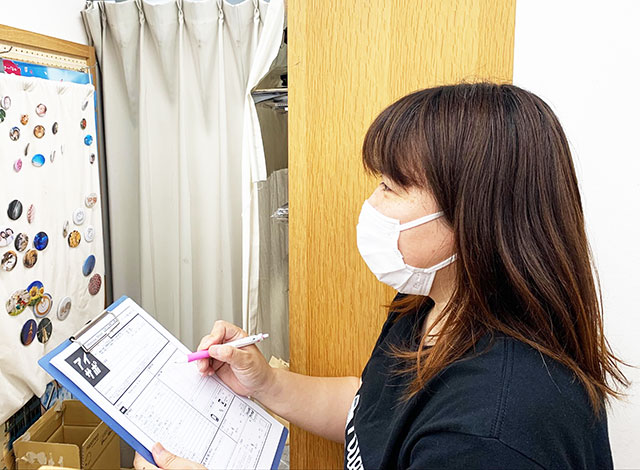 動作チェック項目は全部で18項目。修理の受付前と修理後の作業者チェック、またお会計時にお客様と一緒に確認しております。